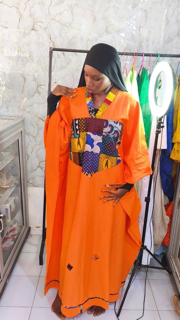 Boubou art orange avec pagne wax